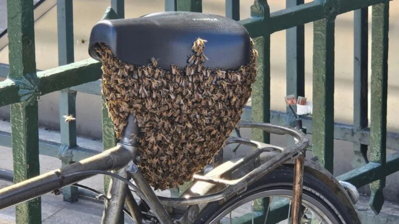 E pazakontë në Paris/ Një tufë me 10 mijë bletë qëndrojnë në një biçikletë përpara Luvrit