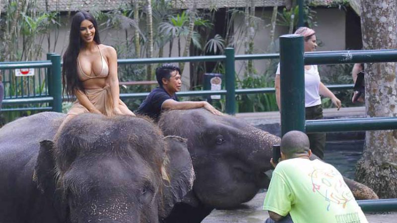 Kim Kardashian me bikini sipër elefantit (Foto)