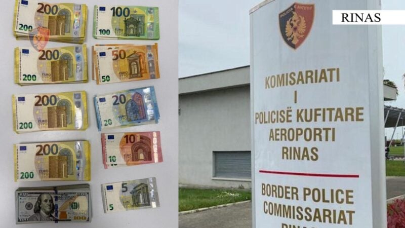 Tentoi të kalonte në aeroportin e Rinasit me mbi 60 mijë euro dhe 10 mijë dollarë, procedohet penalisht 45-vjeçarja kineze 23/01 11:01