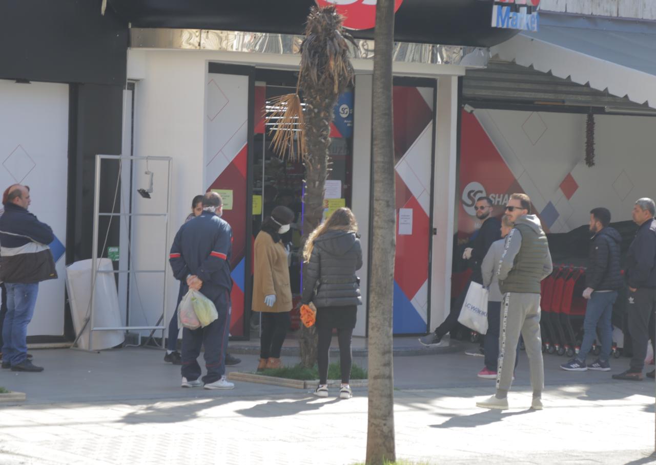 Qindra qytetarët duke mos respektuar as distancën nga njëri tjetri janë “dyndur” në rrugët e Tiranës dhe në supermarkete për të marrë furnizimet e fundjavës pasi pas orës 13:00 të kësaj të shtune asnjë biznes nuk do të jetë hapur.
