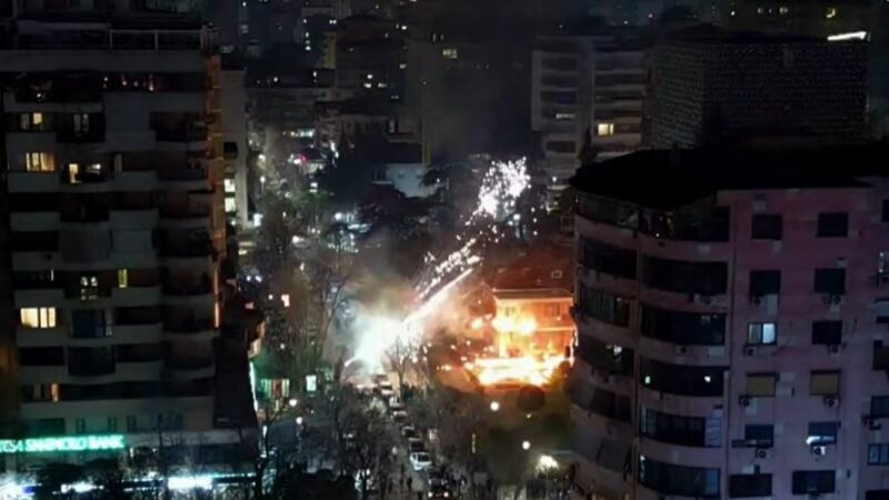 Pamje me dron/ “Shi” fishekëzjarrësh dhe molotovësh, momenti kur i vihet flaka vilës së ish-diktatorit Enver Hoxha