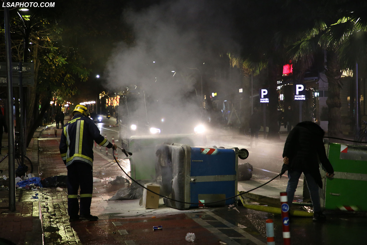 Ai është ndihmuar edhe nga të rinjtë e tjerë që kishin dalë në protestë, të cilët e kanë tërhequr nga duar e policëve.
