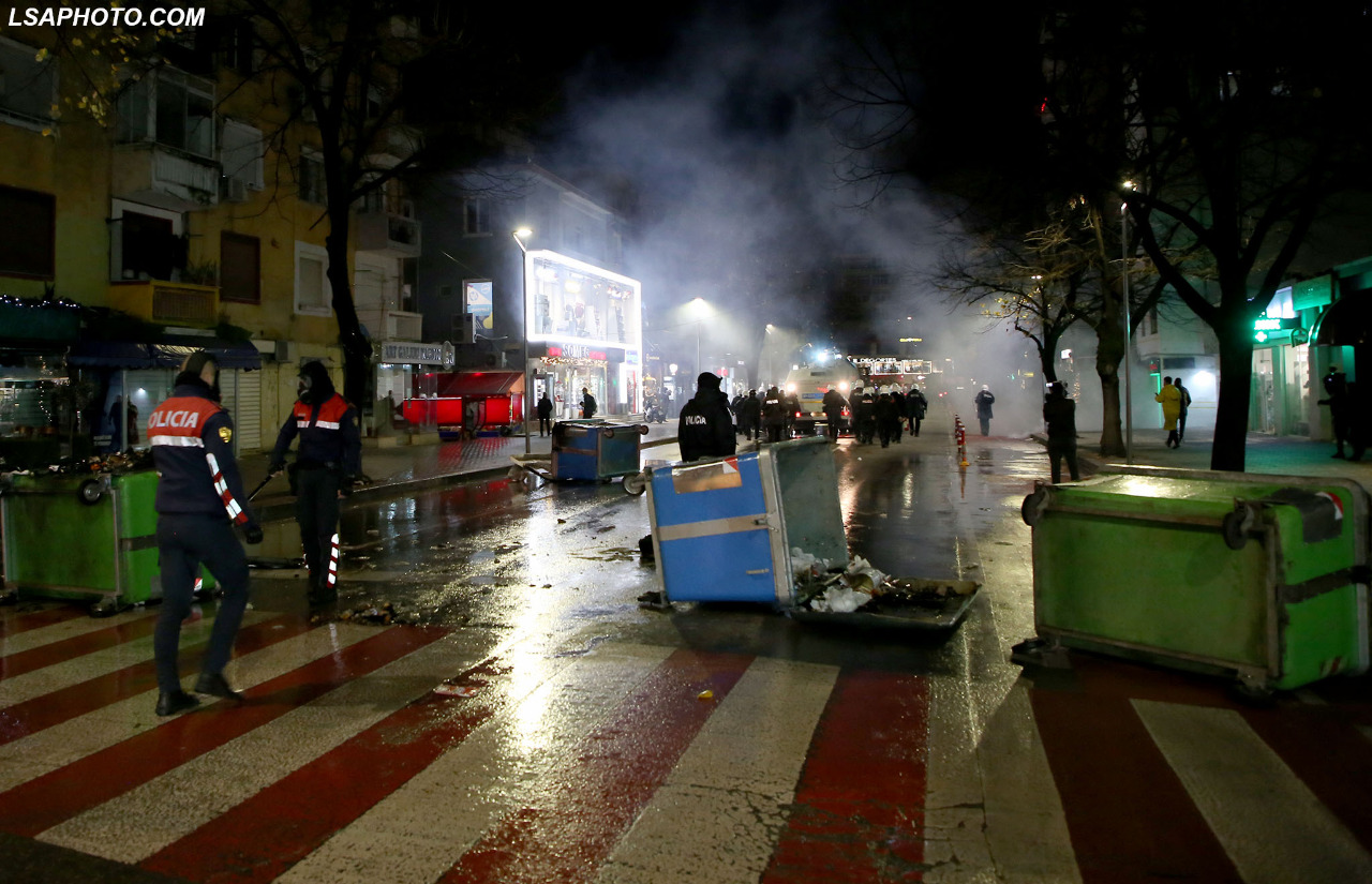 Ai është ndihmuar edhe nga të rinjtë e tjerë që kishin dalë në protestë, të cilët e kanë tërhequr nga duar e policëve.