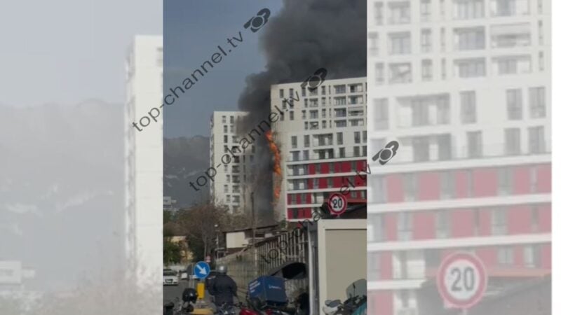 Zjarr në kompleksin e banimit përballë “Nënë Terezës”, flakët përfshijnë fasadën e jashtme të pallatit, zjarrfikëset në vendngjarje