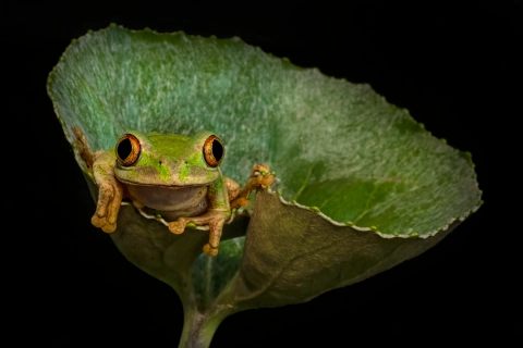“Bretkosë peme e fshehur në gjethen e Ligularia, nga Shirley Gillitt në KwaZulu-Natal