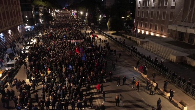 Video/ TCH sjell pamjet me dron nga protesta e opozitës, turma drejtohet nga flamuri gjerman dhe i BE-së