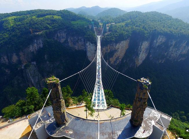 Në mes të dy humnerave të në provincën Hunan, një strukturë e xhamtë e varur, ofron kercimin me litar elastik më të lartë të botës, nga një urë këmbësorësh.