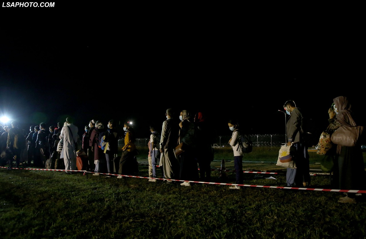 121 afganët e parë kanë ardhur me avion civil nga Tbilisi. Në Rinas ndodhen struktura të ushtrisë dhe ekipe shëndetësore në gatishmëri. Për të pritur 121 afganët e parë ishte ministrja e Punëve të Jashtme, Olta Xhaçka.
