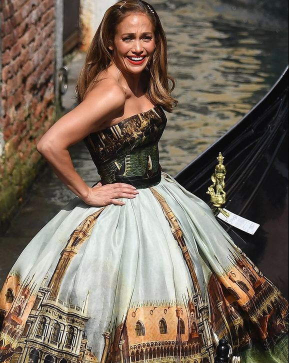 Këngëtarja 52 vjeçare mbrëmjen e djeshme ishte në tapetin e kuq të festivalit me të dashurin, aktorin 49 vjeçar Ben Affleck, ndërsa sot dukej e mahnitshme me një fustan të madh balloje Dolce & Gabbana, në të cilin shiheshin printime të qytetit të famshëm italian ku ajo po qëndron.
