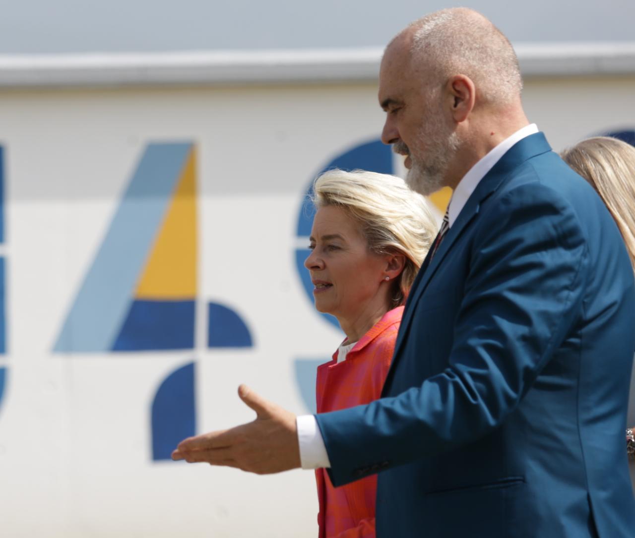 Presidentja e Komisionit Europian ishte e shoqëruar nga ambasadori i BE në vendin tonë, Luigi Soreca, ministri Arben Ahmetaj, ministrja Evis Kushi dhe kryeministri Edi Rama. Von der Leyen nuk hezitoi të afrohej tek fëmijët e kopshtit për t’i komplimentuar për pikturat e tyre.
