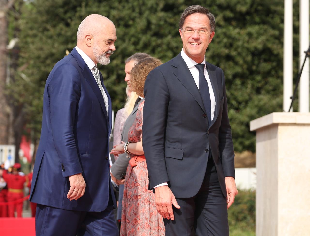 Ndërkohë në orën 14.00 kreu i qeverisë holandeze do të zhvillojë dhe një vizitë në ambjentet e Piramidës që po ristrukturohet. Dy kryeministrit do të bisedojnë për integrimin e Shqipërisë në Bashkimin Europian.
