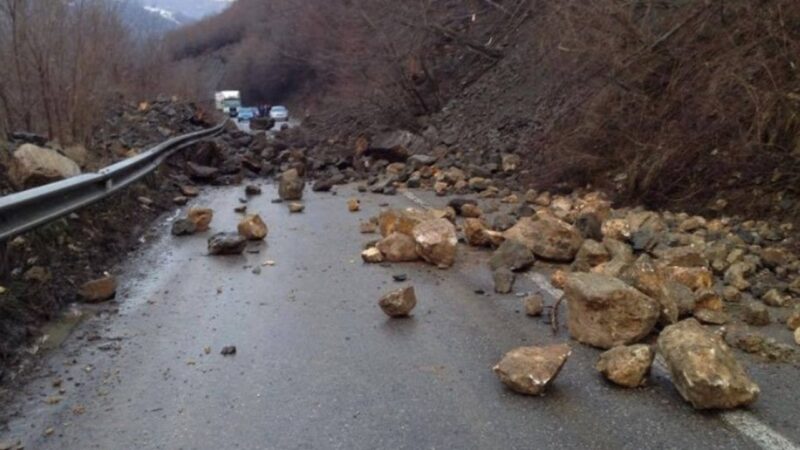 Rrëshqitja e gurëve bllokon aksin Librazhd- Qafë Thanë, paralizohet qarkullimi i automjeteve
