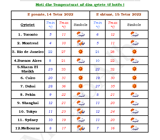 Temperaturat e ajrit do të vijojnë të ulen në mëngjes dhe ndjeshëm në mesditë duke luhatur vlerat ditore nga 5°C deri në 21°C.