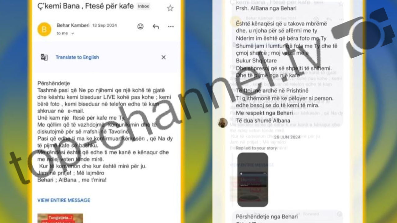 “Përshëndetje. Tashmë pasi që ne po njihemi që një kohë të gjatë dhe kështu kemi biseduar live kohë pas kohe, kemi bërë foto, kemi biseduar në telefon dhe të kam shkruar në email. Unë kam një ftesë për kafe me ty. Me qellim që të vazhdojmë komunikimin dhe të diskutojmë për së rrafshi në tavolinë.