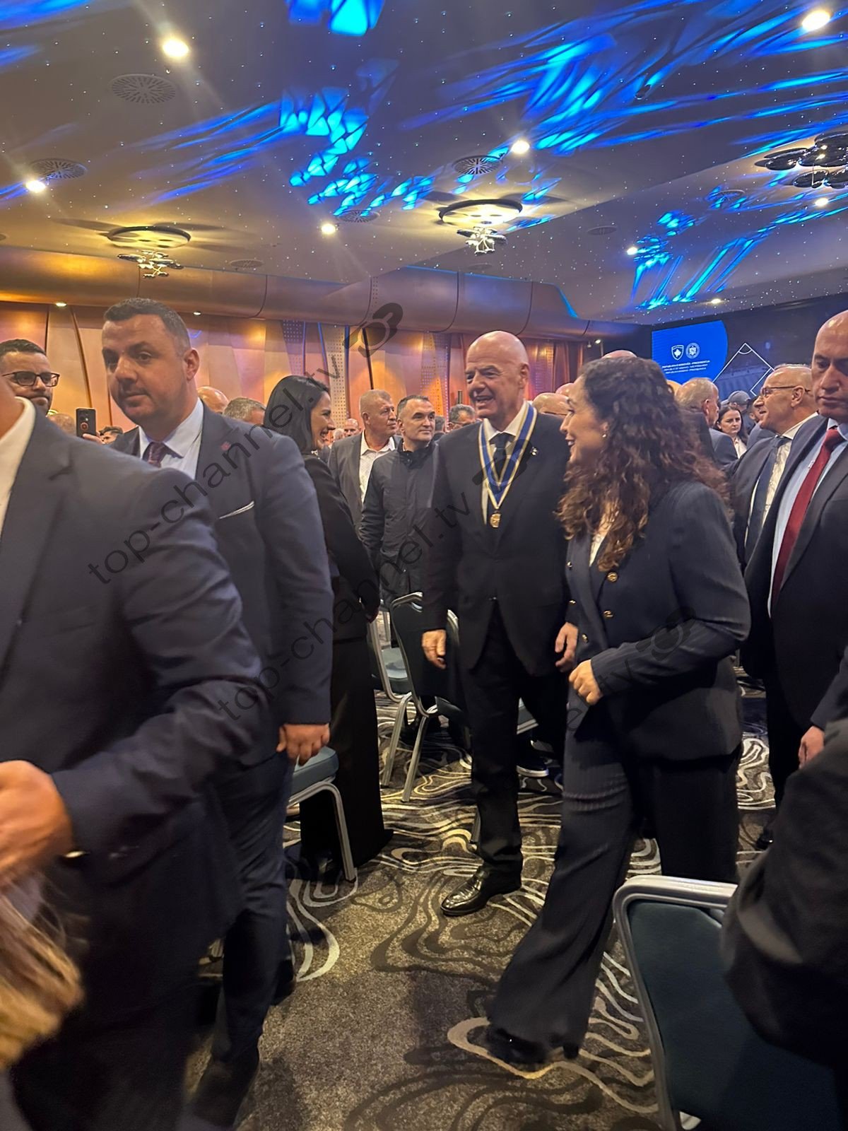 Këtë të mërkurë, Infantino u dekorua nga presidentja e Republikës së Kosovës, Vjosa Osmani përmes një ceremonie solemne.