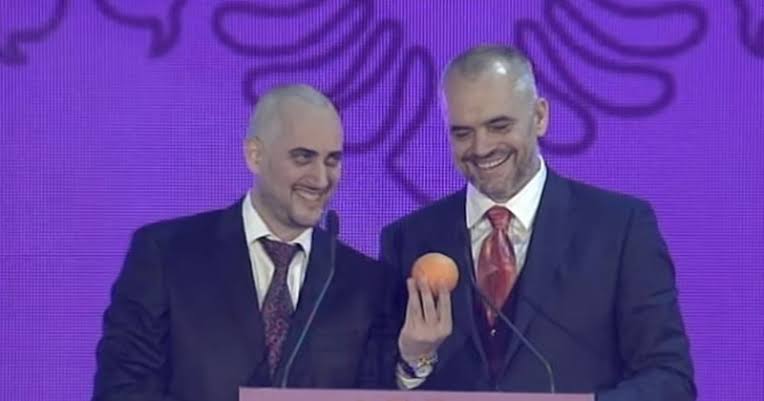 “Kjo foto (fotoja me Edi Ramën) është shkrepur në një aktivitet të FRESH. Në atë periudhë, thonin që Rama ishte e vetmja zgjidhje që mund ta shpëtonte vendin, në 2013. Duke qenë se e imitoja, bëra një skeç dhe në fund bëra një lidhje me daljen e parë në Fiks Fare, që të më përzinte më dha një mandarinë, e më pas kur e kam takuar sërish i dhash një portokall”.