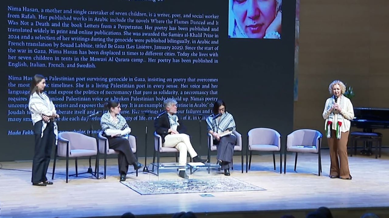 Përmes një videomesazhi që u transmetua në Festivalin Letrar për të rinj, në një sesion nën moton “Palestina flet”, shkrimtarja që vlerësohet si zë i qëndrueshmërisë, rezistencës dhe rrëfimit të historive në Gaza,