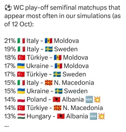 Nga statistikat e fundit, “Football Meets Data” ka zbuluar dhe dy kundërshtarët e mundshëm të Shqipërisë në rast kualifikimi në fazën “Play Off” të Botërorit 2026.