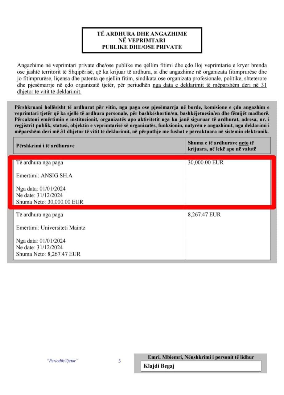 Bardhi ka publikuar dokumentet, ku pretendon se e djali i presidentit Bajram Begaj, paguhet 30 mijë euro në vit nga kompania ku sigurohet Presidenca.