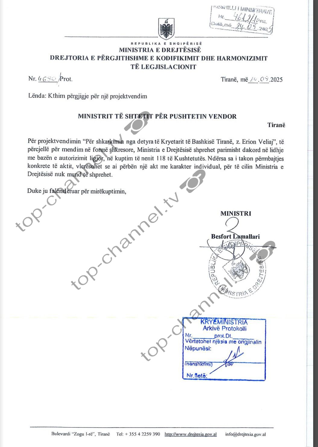 “Këshilli Bashkiak Tiranë ka konstatuar se mosparaqitja në detyrë, në rrethanat e sipërcituara dhe për një periudhë më të gjatë se tre muaj, përbën shkak ligjor për të propozuar shkarkimin e Kryetarit të Bashkisë. Fakti juridik i pamundësisë së paraqitjes në detyrë është fakt publik dhe vërtetësia e tij nuk mund të vihet në dyshim”, thotë Këshilli Bashkiak.