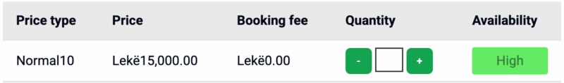 Pjesa e karshisë me tre blloqet E104, E105 dhe E106 të cilësuara si Kategori 1, kushtojnë 15.000 lekë ndërsa kati I dytë I stadiumit dhe pjesët më anësore të karshisë kanë një çmim prej 9000 lekësh