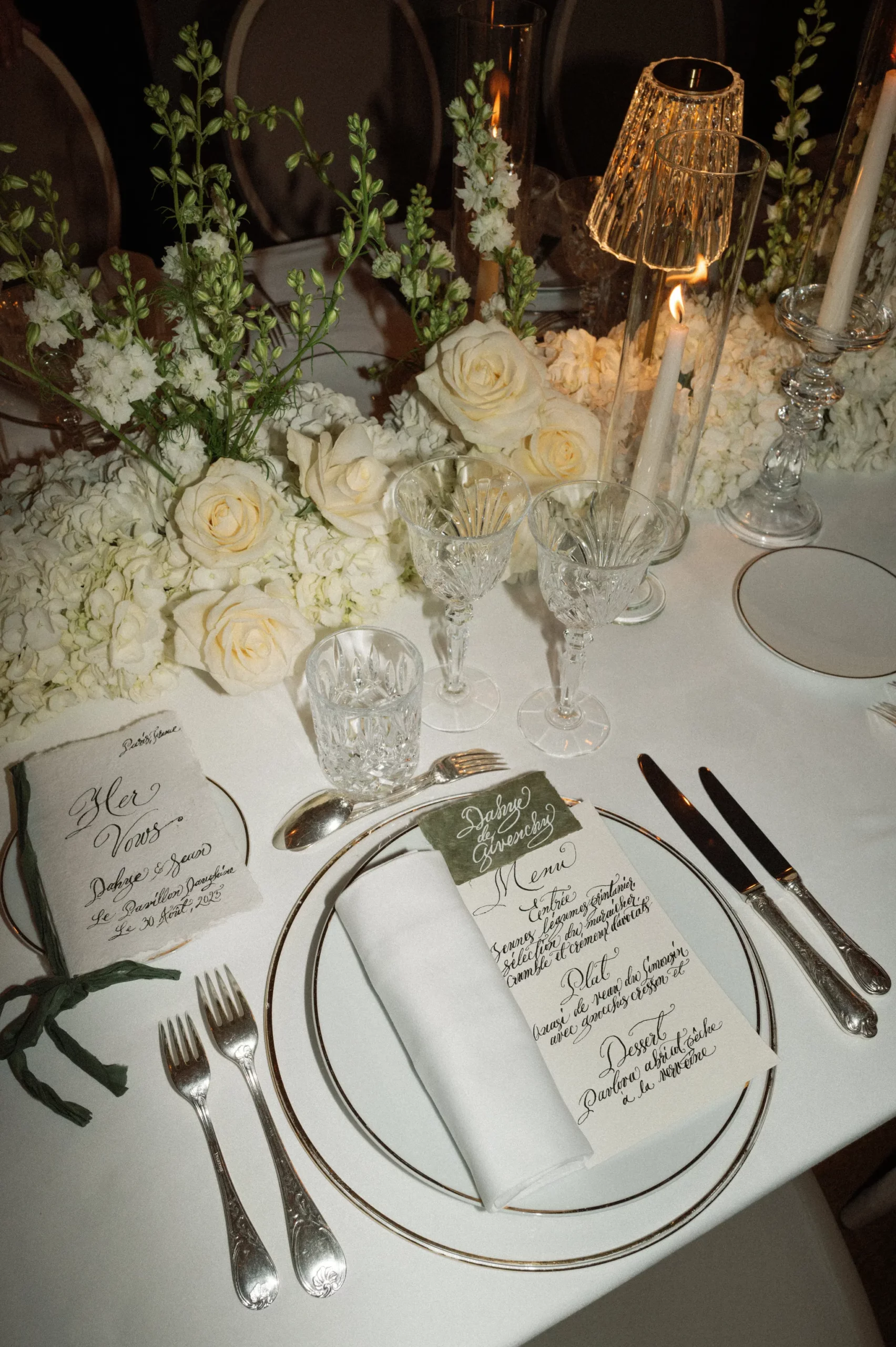Dasma u zhvillua nga 28 deri më 30 gusht, me një darkë provuese në “La Fontaine Gaillon”, një brunch mirëseardhjeje në hotelin “Le 5 Particulier”, dhe ceremoninë madhështore në Bazilikën Sainte-Clotilde, e ndjekur nga pritja luksoze në Le Pavillon Dauphine.