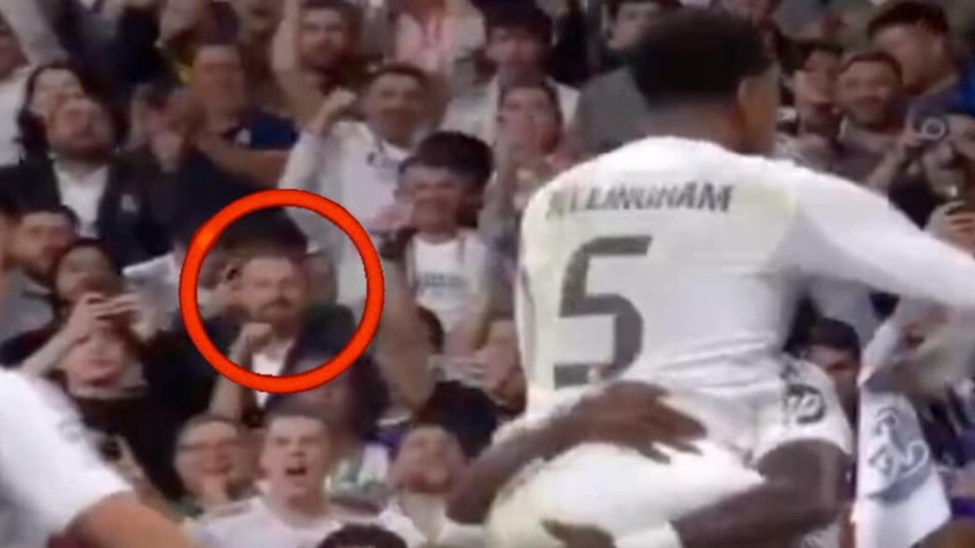 Gjatë festimit të golit të Jude Bellingham në sfidën mes Realit të Madridit dhe Juventusit, kamerat fiksuan imazhin e një personazhi të njohur italian që po buzëqeshte në atë moment në tribunat e Santiago Bernabeut