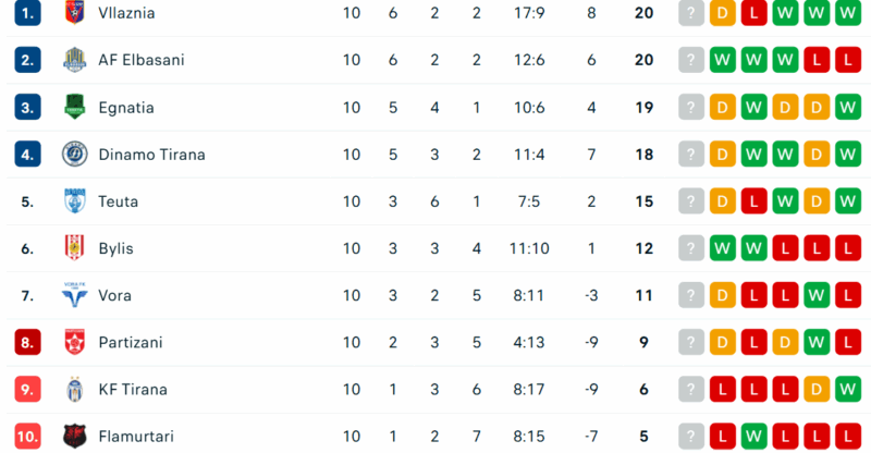 Me këtë pikë, Partizani vijon të qëndrojë në vendin e 8-të me 9 pikë, dy më pa se Vora që ndodhet në zonën e sigurt.