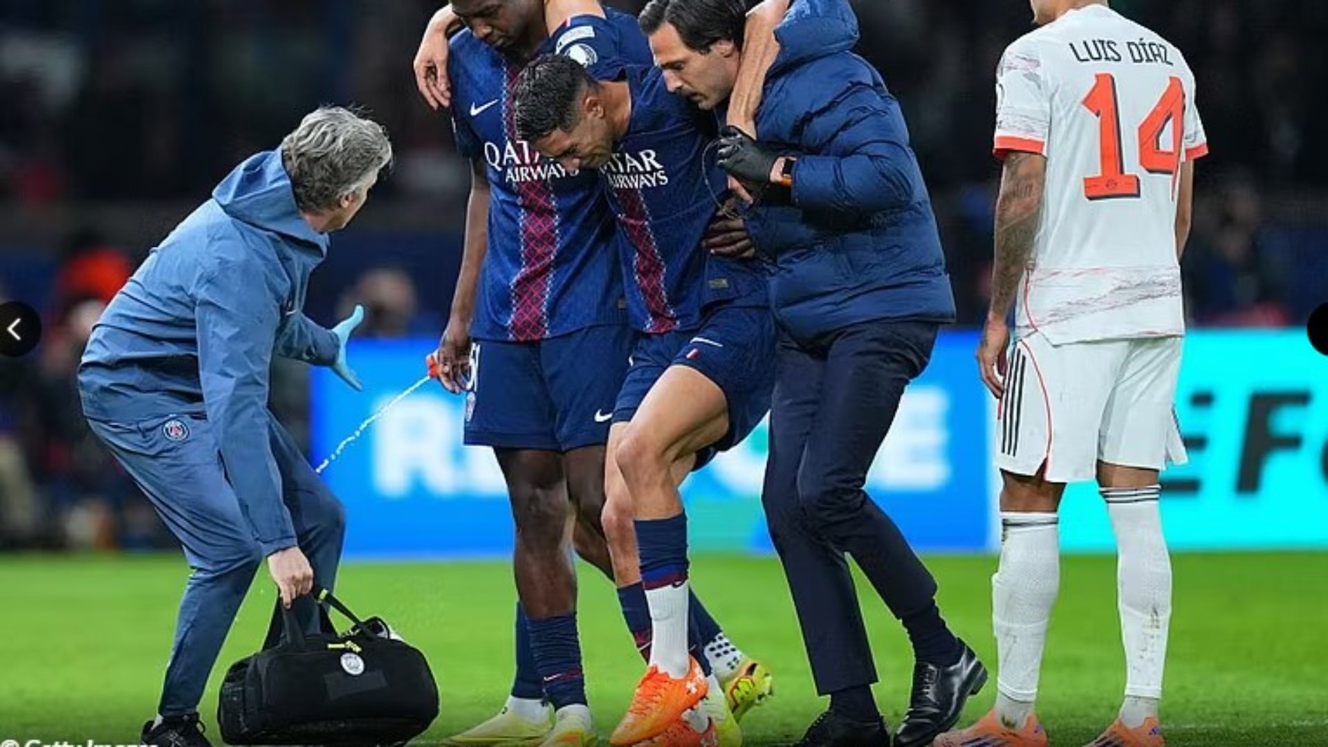 Imazhi i kaviljes së Hakimit e dëmtuar pas ndërhyrjes ‘horror’ të Luis Diaz bëri xhiron e botës. Për fat të mirë dëmtimi i mbrojtësit maroken të Paris Saint Germainit është më pak i rëndë nga sa u mendua.