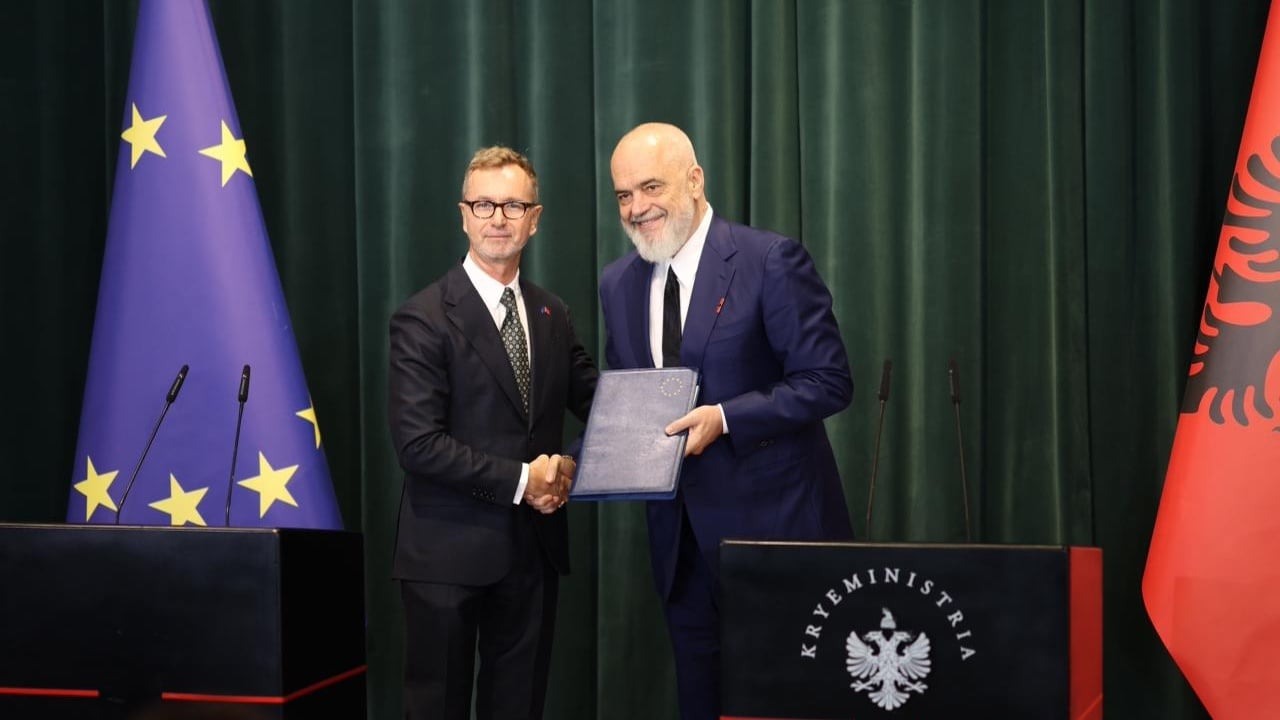 Ambasadori i BE-së në Shqipëri, Silvio Gonzato i dorëzoi raportin e progresit të Shqipërisë kryeministrit Edi Rama.