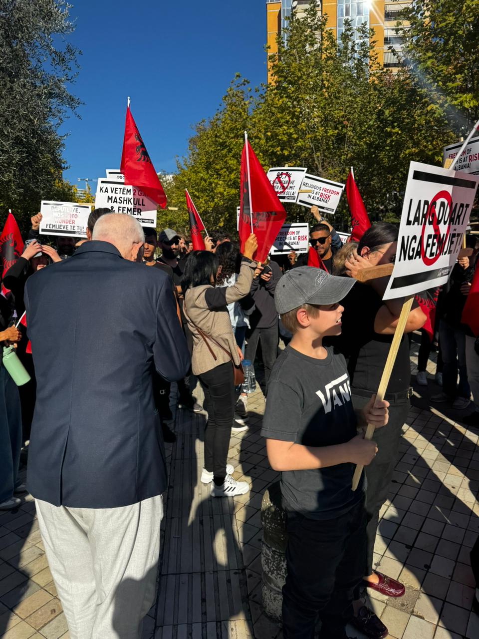 Protesta është thirrur nga “Koalicioni Shqiptar pro Familjes dhe Jetës”. Me pankartat “deputetë, mos votoni kundër fëmijëve”, “projektligji i barazisë gjinore, anti-familje”, “largoni duart nga fëmijët”, ata kërkojnë të mos miratohet projektligji.