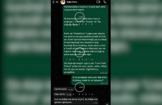 E kontaktuar nga moderatori Ronaldo Sharka për të dhënë një reagim për “Live From Tirana” lidhur me postimin në fjalë, Egla Ceno është shprehur: