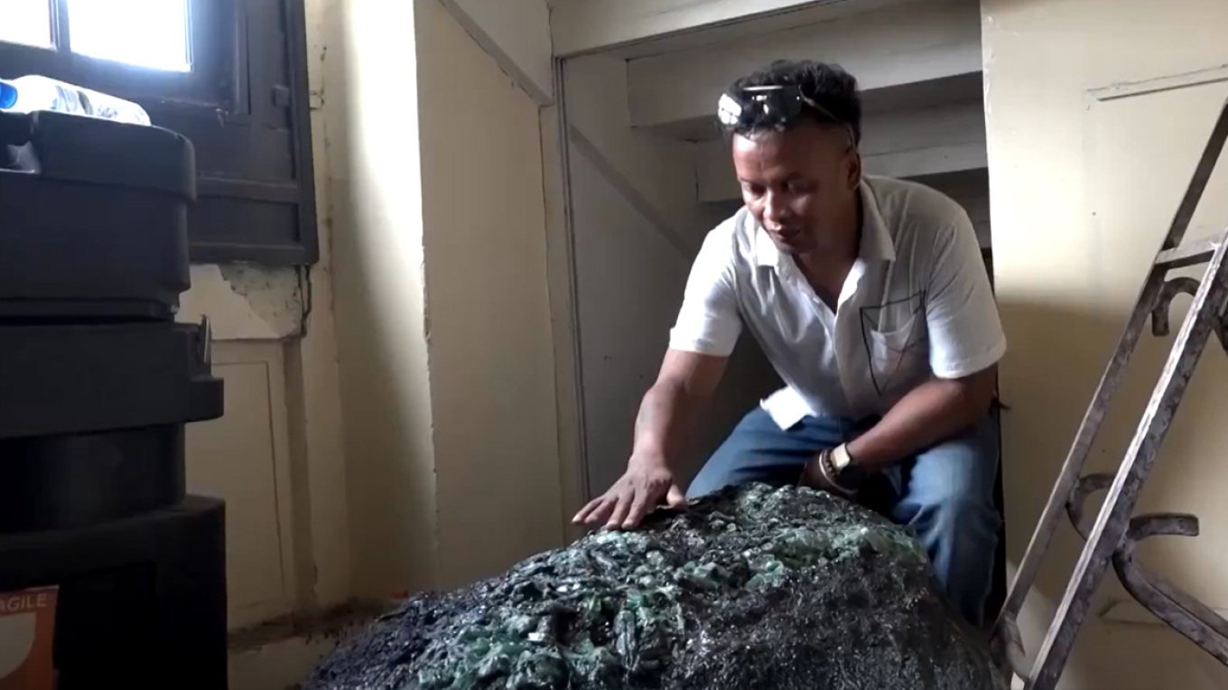 Madagascar's new military leader unveiled a large emerald boulder he said was discovered at the presidential palace. The dark boulder streaked with shimmering green crystal https://t.co/IGKf1juOrH pic.twitter.com/dubn6OPA36