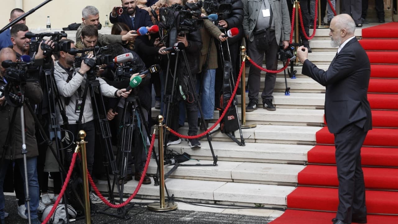 Kryeministri Edi Rama ndodhet para pallatit të Brigadave, aty ku po pret liderët e Ballkanit Perëndimor, për samitin “Plani i Rritjes, rruga jonë në BE”, që do të mbahet në Tiranë.