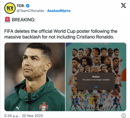 Të gjithë po kërkonin CR-7 pranë Messit, Mbappes dhe Haaland, por në vend të Ronaldos në poster ishte një tjetër portugez, ishte Bruno Fernandes. Sapo e postoi posterin në rrjetet sociale, u bë një zhurmë e madhe nga reagimet në komente dhe FIFA u detyrua ta tërhiqte atë dhe të shfaqte një të ri me Ronaldon.