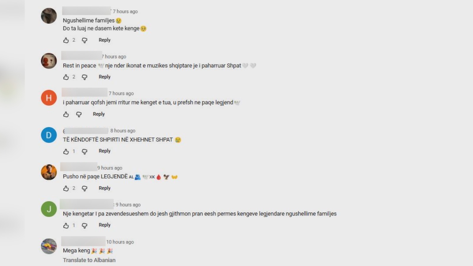 Jo vetëm shqiptarë shprehin dhimbjen për humbjen e artistit, por edhe të huaj, të cilët i quajnë të pavdekshme këngët e tij.