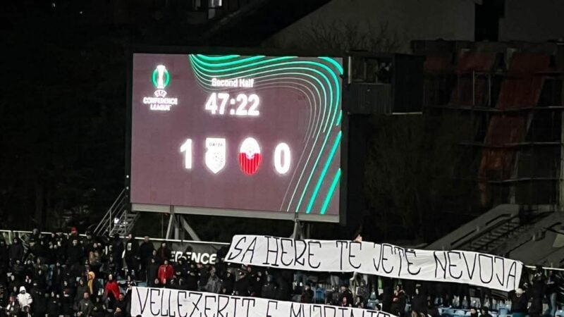 Himni kombëtar, “Mora fjalë” dhe dy super koreografi nga Intelektualët dhe Ballistët e kthyen stadiumin ‘Fadil Vokrri’ në një skenë të vërtetë kuqezi, teksa Drita priti Shkëndijën e Tetovës në kuadër të Ligës së Konferencës.