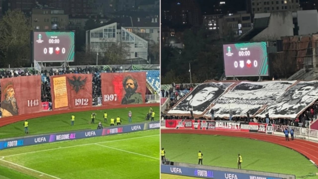 Në tribuna, “Intelektualët” e Dritës dhe “Ballistët” e Shkëndijës shpalosën dy koreografi gjigante, të kuruara deri në detaj, duke dërguar mesazhe të fuqishme për unitet, krenari dhe festat e nëntorit. Ngjyrat kuqezi dominuan kudo dhe mbushën stadiumin me një energji që rrallë shihet në ndeshjet e klubeve shqiptare. Aktualisht po luhet pjesa e dytë ku rezultati është 1-0 në favor të gjilanasve.