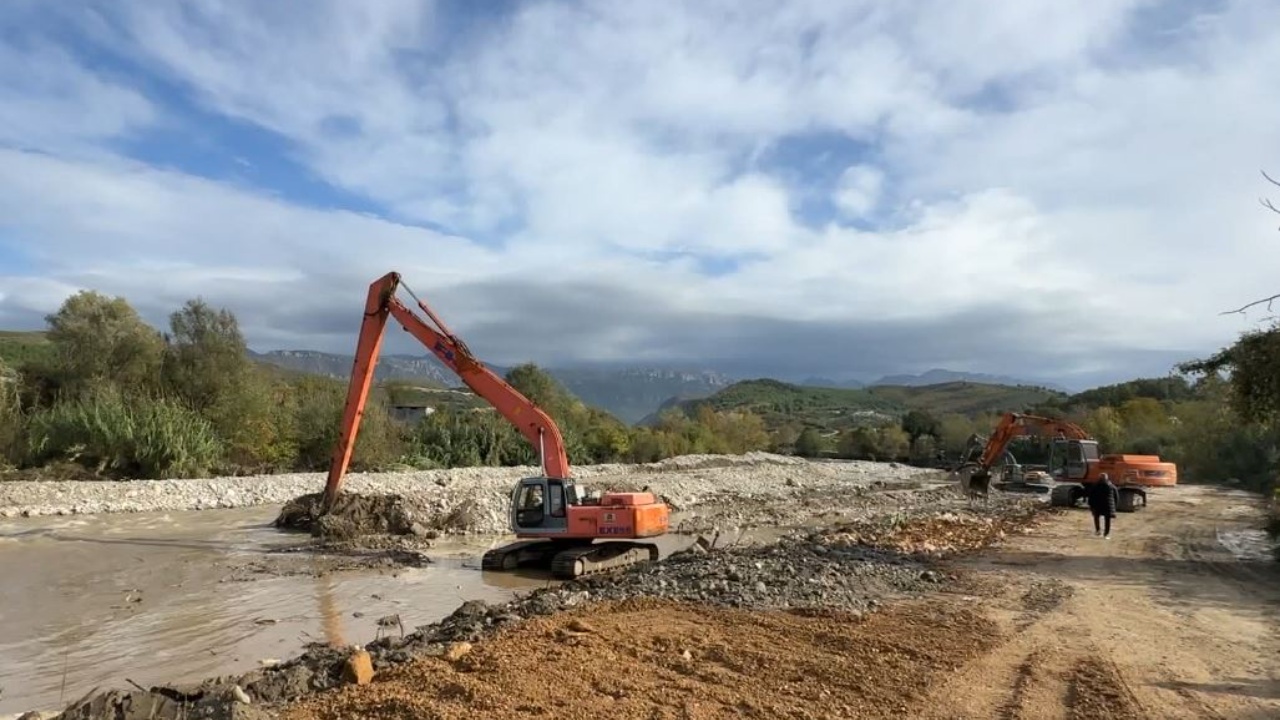 Puna po vijon në shtratin e lumit për të bërë të mundur hapjen e rrugës dhe aksesin për banorët.