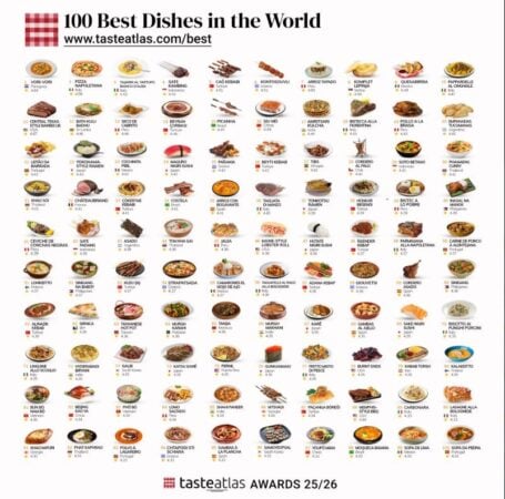 Kjo renditje e TasteAtlas bazohet në mijëra vlerësime të përdoruesve dhe artikuj të dhënë nga ekspertë të ushqimit, duke ofruar një panoramë globale të traditave dhe shijeve kulinare.