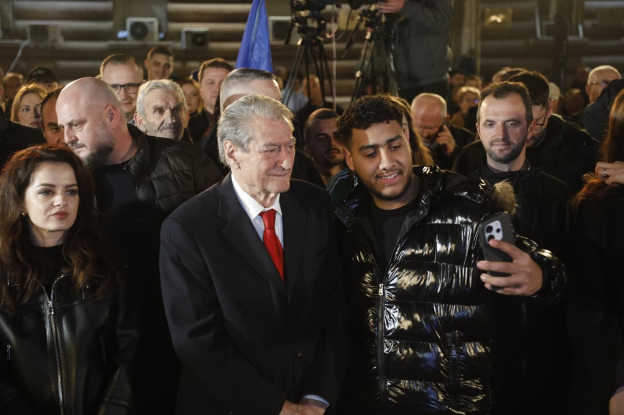 Protestës iu bashkua edhe kryetari i Partisë Demokratike, Sali Berisha, i cili pritet të mbajë fjalim.