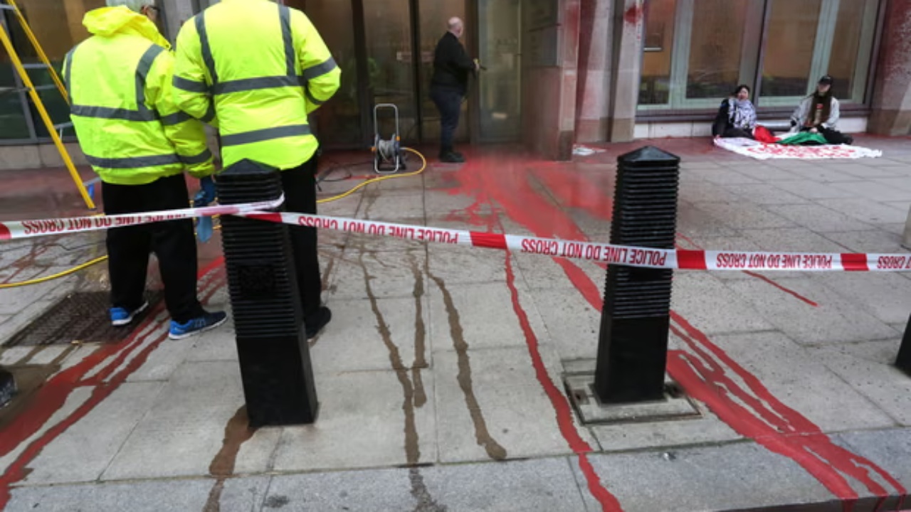Aktivistët pro-Palestinës kanë lyer me bojë të kuqe ndërtesën e Ministrisë së Drejtësisë në Londër, duke kërkuar që sekretari i drejtësisë të takohet me tetë grevistë të grupit “Aksioni Palestinez”.