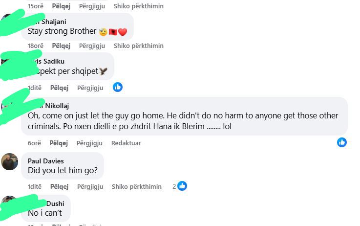 “Po lëreni rehat të kthehet në shtëpi, ai si ka bërë keq kujt, kapni kriminelët e tjerë”, shkruan një komentues.