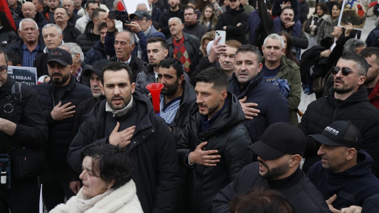 “Turp, turp. Nuk po ju bëjmë gjë me çadër jemi“-dëgjohen protestuesit.