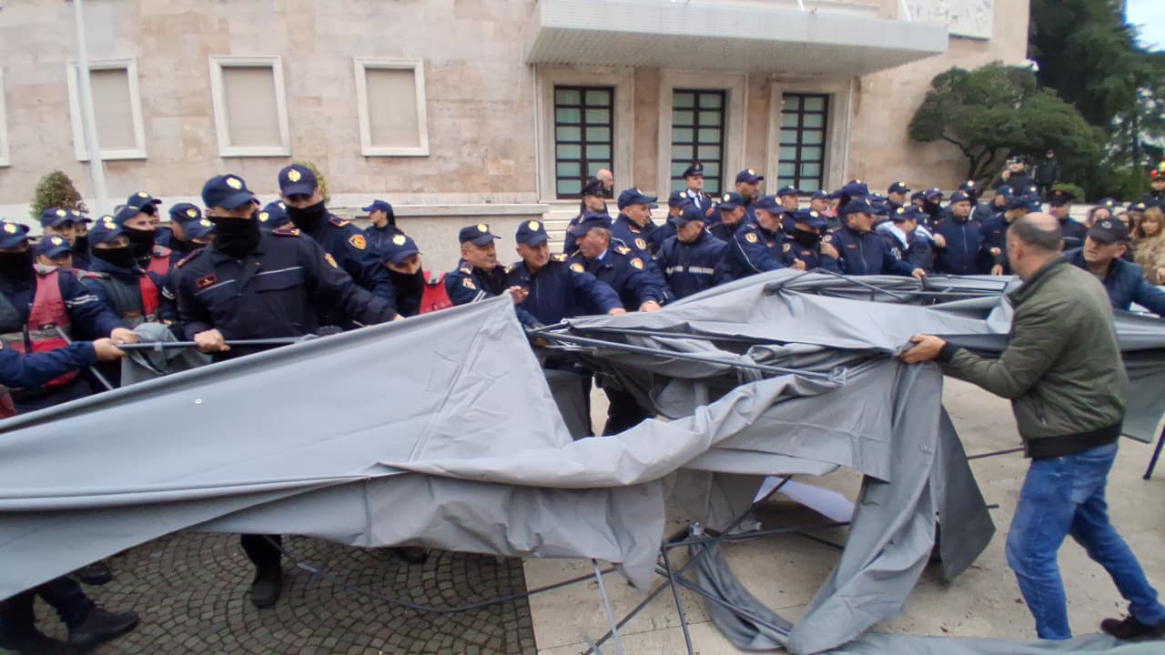 Duket se mbështetësit e Adriatik Lapajt nuk janë lejuar nga policia të ngrenë çadra para Kryeministrisë. Ata tentuan të ngrinin dy çadra të mëdha, por ndërhyri policia.