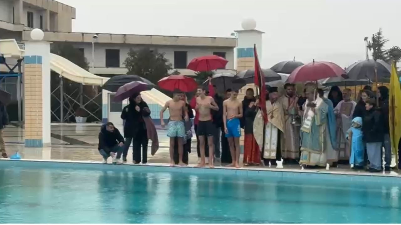Pavarësisht kushteve të motit në Elbasan është zhvilluar ceremonia e ditës së Ujit të Bekuar në një nga komplekset e pishinave.