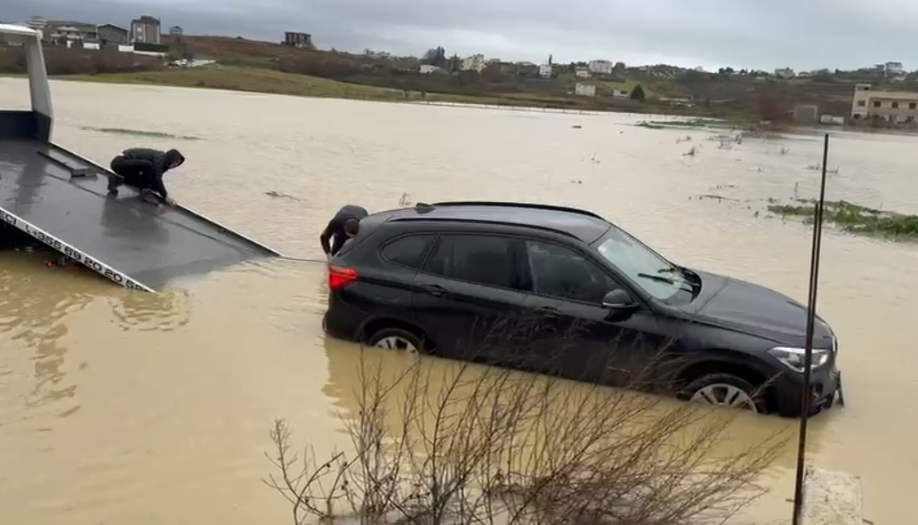 Sikurse duket në pamje, automjeti ka mbetur i bllokuar, ndërsa po ndërhyhet me karrotrec.