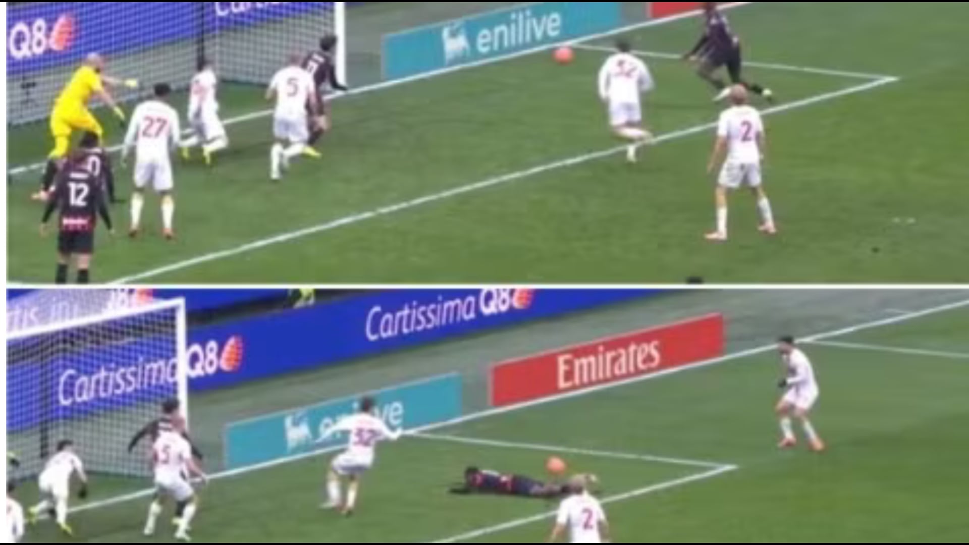 Por momenti që bëri më shumë lajm në mbrëmjen e akullt të Milanos ishte rrëshqitja e Youssouf Fofana, që në fundin e një pjese të parë të vështirë për të dhe skuadrën e tij, ishte i protagonisti i pafat i një goli të sigurt që nuk u shënua nga prej tij; krosimi i Saelemaekers, gjuajtje me zgjatjen e këmbës nga Leao që u ndal nga Leali dhe topi që shkoi në drejtim të mesfushori francez që u koordinua për të gjuajtur me kokë, por ai rrëshqiti në mënyrë qesharake duke e humbur topin