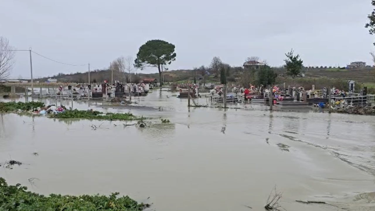 Video/ Përmbytjet nuk kursejnë as varrezat e fshatit Jubë të Durrësit, uji mbulon territorin