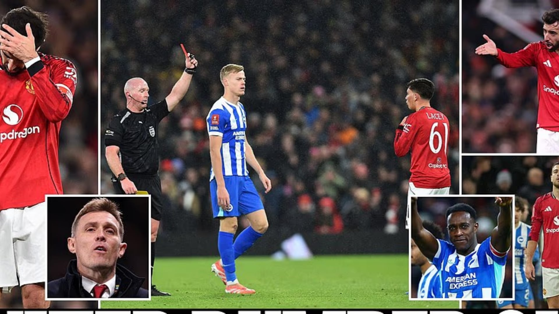 Në pjesën e dytë, Manchester United u ndëshkua sërish këtë radhë nga një njohje e vjetër e tij, Danny Ëelbeck, që në minutën e 64 shënoi golin e dytë për Brightonin. Djajtë e Kuq në minutën e 85 rihapën llogaritë e ndeshjes me golin e Seskos, por 4 minuta më vonë Lacey u ndëshkua me karton të kuq duke e lënë Manchester United në minutat e mbetura në inferioritet numerik dhe sfida u mbyll 2-1 për Brighton që vijon rrugëtimin e tij në Kupën e Anglisë, ndërsa Manchester United vazhdon të mos shohë dritë në fund të tunelit
